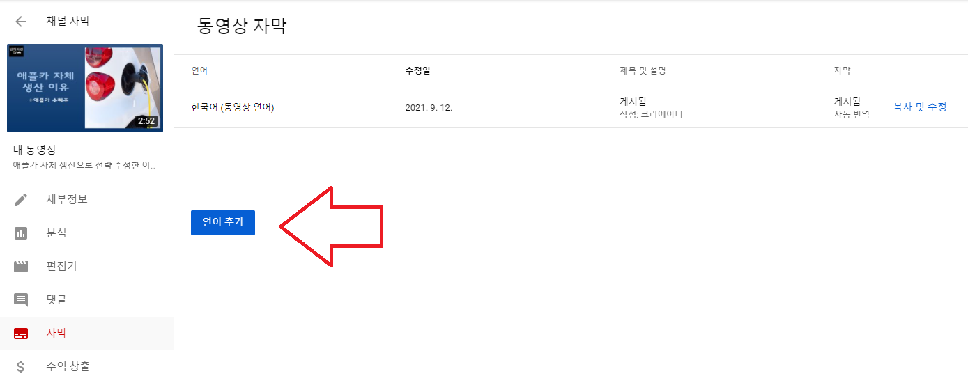 여기에서 언어를 추가하고 싶은 영상을 클릭하세요.