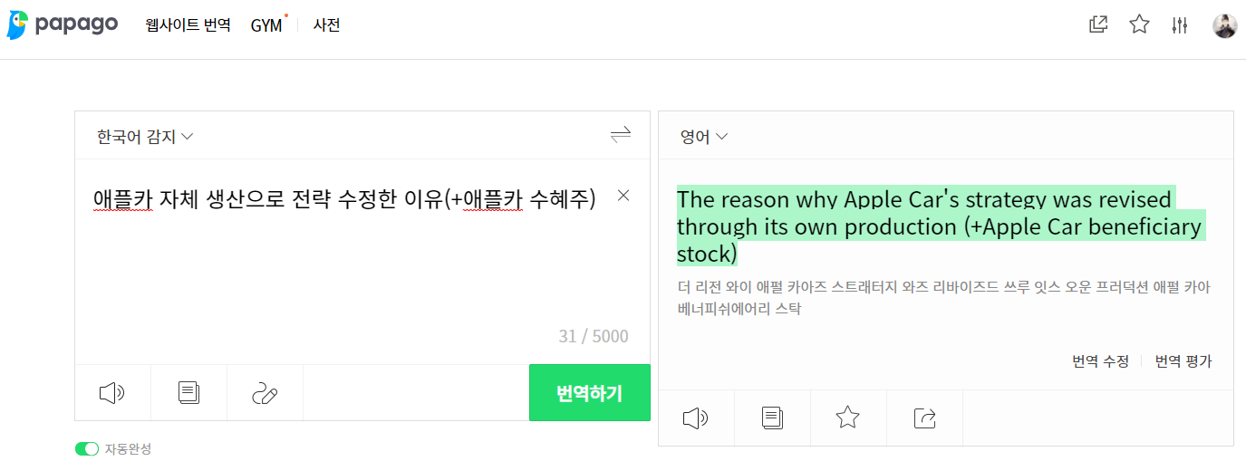 네이버 파파고 번역기를 이용해서 제목과 내용을 원하는 국가의 언어로 변경시킵니다.