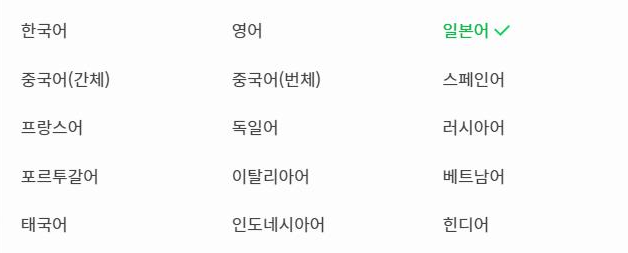 네이버 파파고 번역기가 지원하는 언어는 영어, 일본어, 중국어(간체), 중국어(번체), 스페인어, 프랑스어, 독일어, 러시아어, 포르투갈어, 이탈리아어, 베트남어, 태국어, 인도네시아어, 힌디어로 15개 국가의 언어가 지원됩니다.